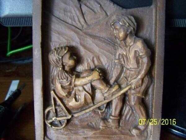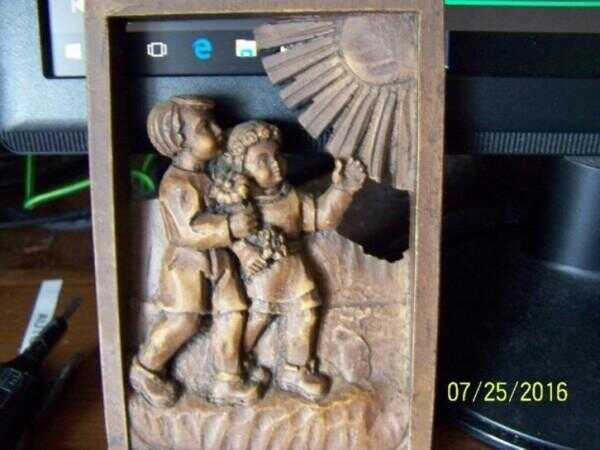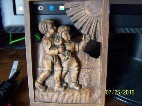 4 mooie wand decoratie,s matriaal onbekent geen houd gips of kunsstof ieder geval goed onderhouden alle 4 voor 35€ voor 4 stuks. is incl verzend kosten.