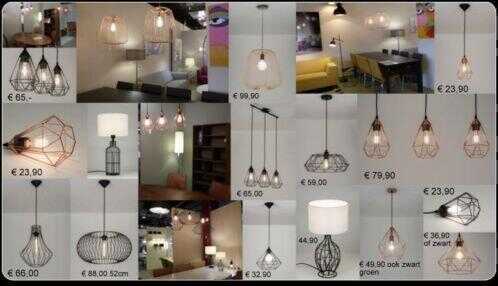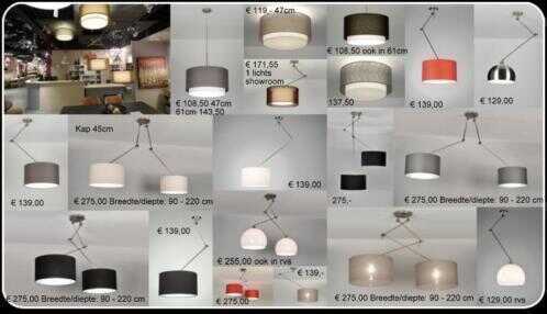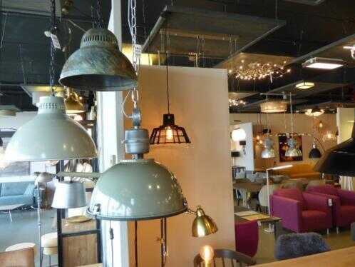 Foto 6 tm 13 showroom foto winkel en foto 23 en 24 showroom collages van andere lampen industrieel en stoffen kappen vloerlampen tafellampen spots