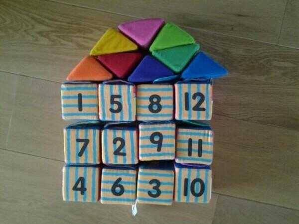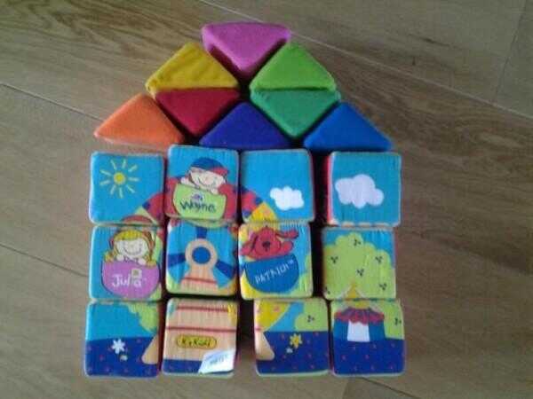 Leuke blokken. De kinderen spelen er heel lang mee. Vanaf baby tot ver daarna.De zachte blokken zijn heel en zien er netjes uit.