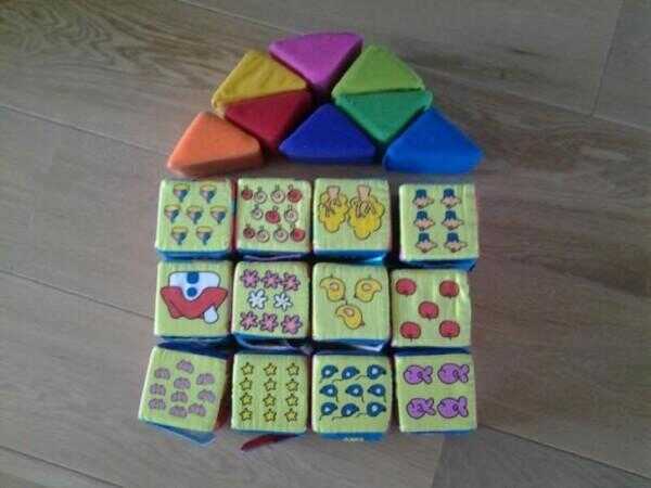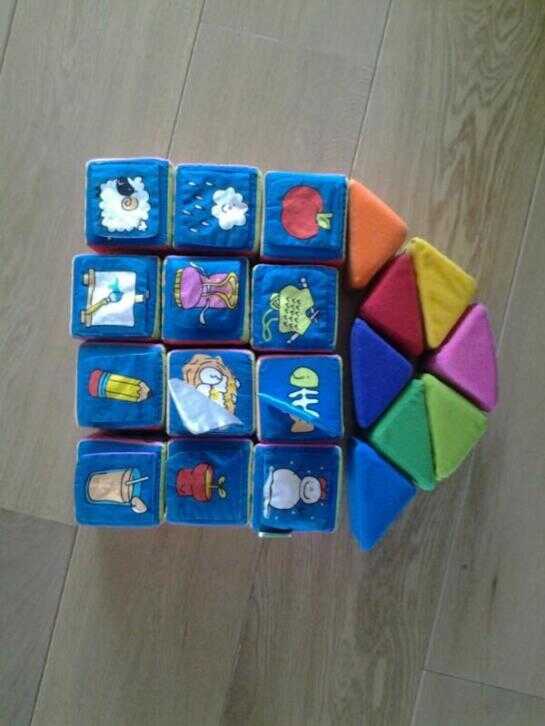 Beschrijving Te koop zachte blokken voor een baby. Nog nieuw in t plastic