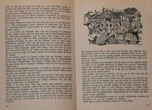 Kenmerken Conditie: Gelezen Type: Fictie Beschrijving Jeugdboek uit de serie over Joke & Wies. Speelt zich af in Suriname.Met illustraties van Beckmann. Uitgever: J.N. Voorhoeve; Den Haag.77 pagina's; z.j. Doorgestreepte naam op schutblad; mooie cond
