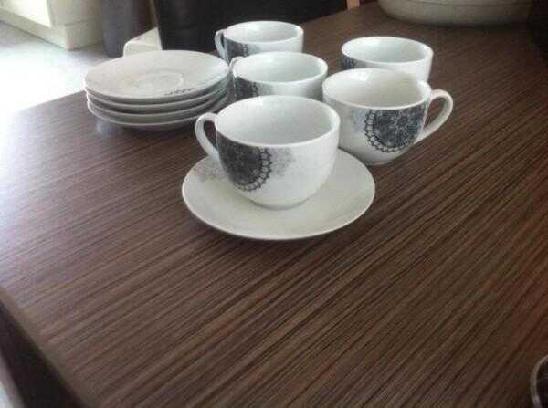 Espresso 6 kopjes en 6 lepels.