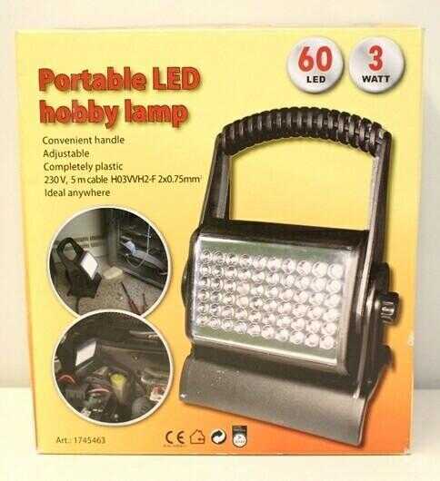 Praktische draagbare en energiezuinige ledlamp, met verstelbare handgreep, gerichte lichtbundel van 60 leds
