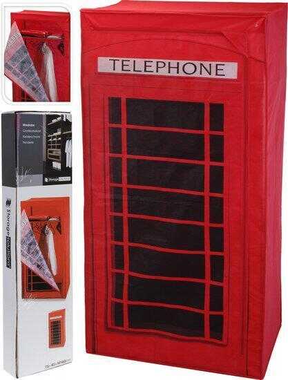Heel erg leuk in de slaapkamer, deze garderobekast met een telefooncel print.Voorzien van een rits zodat de kast stofvrij gesloten kan worden.