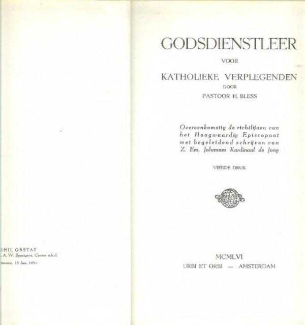 Godsdienstleer voor katholieke verplegingenUrbi et Orbi te Amsterdam uit 1956 4e druk