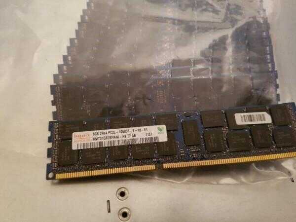 Hynix 8gb 2rx4 pc3l-10600r registered ECC PE R610 R620. 14 stuks.Dit type ram is ECC / registered. Dit betekent server grade RAM, werkt niet in Apple producten of meeste desktop PC's.