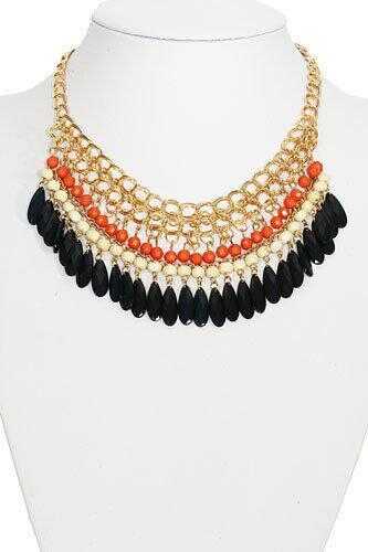 Ketting met met rode, witte en zwarte steentjesKleur: wit, zwart, rood
