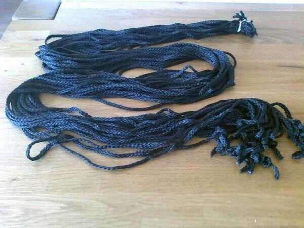 21 koorden van nylon, geschikt voor allerlei doeleinden. 2.35 m langPer stuk € 0,35 of 1 koop € 5,00