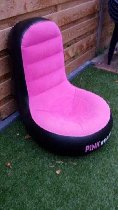 Kenmerken Conditie: Zo goed als nieuw Aantal stoelen: Eén Materiaal: Kunststof Kleur: Overige kleuren Beschrijving Mooie roze opblaasbare relaxstoel.