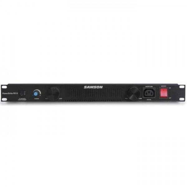 De Samson Powerbrite is een professionele spanningsverdeler en stabilisator. De Powerbrite voorziet in zowel de stabilisatie als piekbeveiliging (spike clamping) van de spanning alsmede RMI/EFI filtering. De powerbrite neemt slechts 1HE hoogte in en is voorzien van een 10 Ampere stroombeveiliging en verdeelt feilloos en veilig de spanning naar de 8 uitgangen aan de achterzijde. Aan de voorzijde heeft de Powerbrite een extra uitgang en twee duurzame uitschuifbare richtbare LED lampjes met dimmer. Voor verlichting aan de achterzijde van het rack is een LED zwanenhals lampje bijgeleverd. De Samson Powerbrite wordt geleverd inclusief 4 outlet kabels.