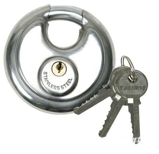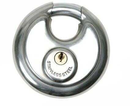 Direct leverbaar & boven € 50,00 GRATIS verzonden !Heavy duty RVS beveiliging disc hangslot met geharde beugel.Messing cilinder.Inclusief 3 messing sleutels.Diameter sluitpen: 12 mmDiameter slot: 90 mm