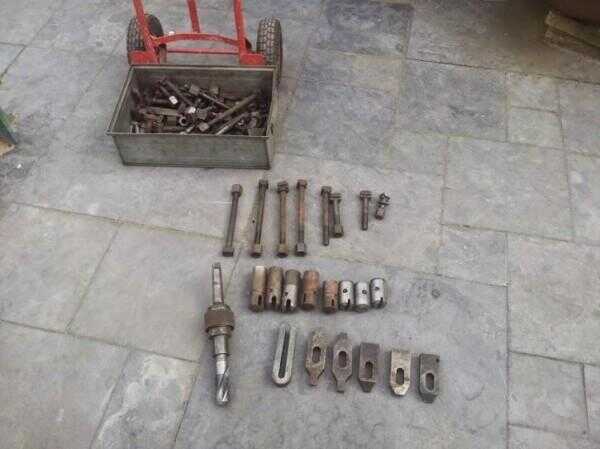 span platen met t-bouten en t-moeren voor op een bed van boormachine/freesbank.voor meer informatie graag bellen met 0578641724.