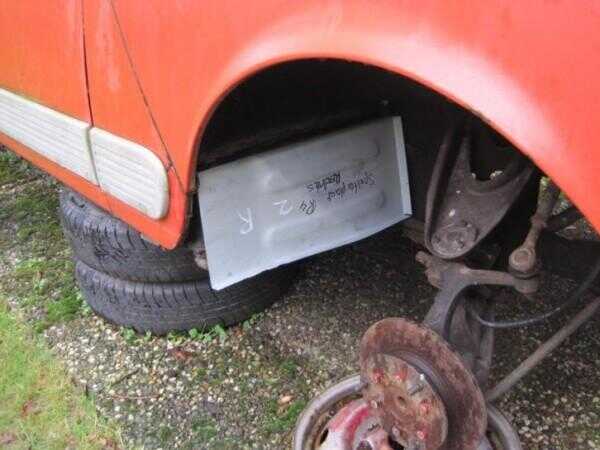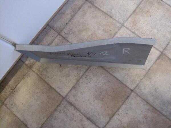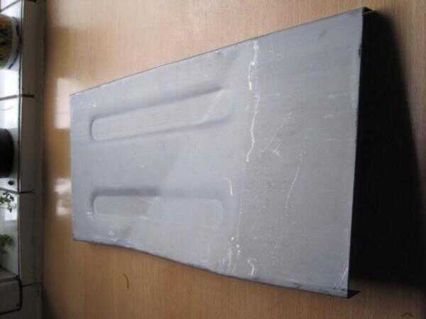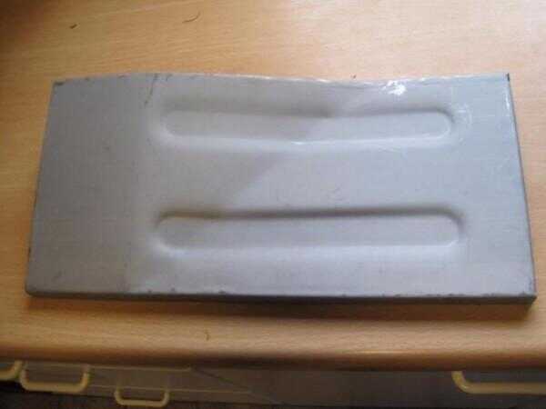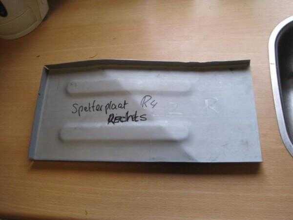 Uit oude stock verkregen een rechter spetterplaat die gebruikt kan worden voor restauratie van de voorzijde van het Renault 4 chassis. En dan gaat het met name om het verticale deel rechts vooraan het R4 chassis, waar de benzineleiding overheen loopt. Door het voortdurende gespetter van het voorwiel van water en steenslag hebben deze hoekpunten het vaak zwaar te verduren. Fotos geven een duidelijk beeld waar het om gaat. Deze rechter spetterplaat is al voorgevormd voor een goede pasvorm. Helaas heb ik de linker spetterplaat niet.Verzending is geen probleem, dat kost 6,95 euro