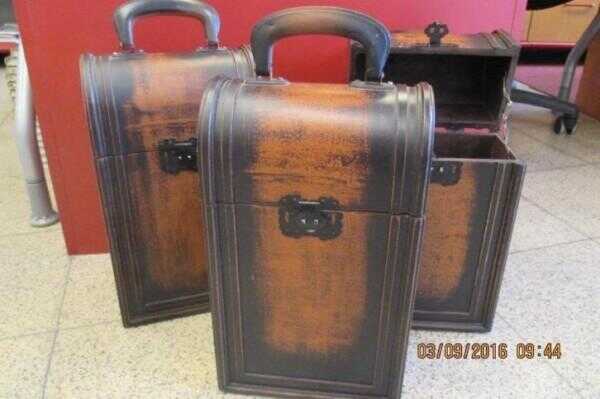 Te koop: 3 Houten Wijnkisten.geschikt voor 2 flessen wijn, normaal formaat.